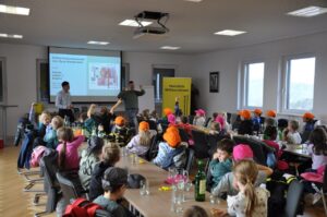 Zu Beginn erwartete die Schülerinnen und Schüler ein spannender Vortrag. Dabei erfuhren sie, wie man Banknoten überprüft, aus welchem Material Geldscheine bestehen, was eine IBAN ist, warum Sparen wichtig ist und wie eine Bank überhaupt funktioniert. Die Kinder lauschten aufmerksam und stellten viele interessante Fragen, die vom Bankteam geduldig beantwortet wurden.