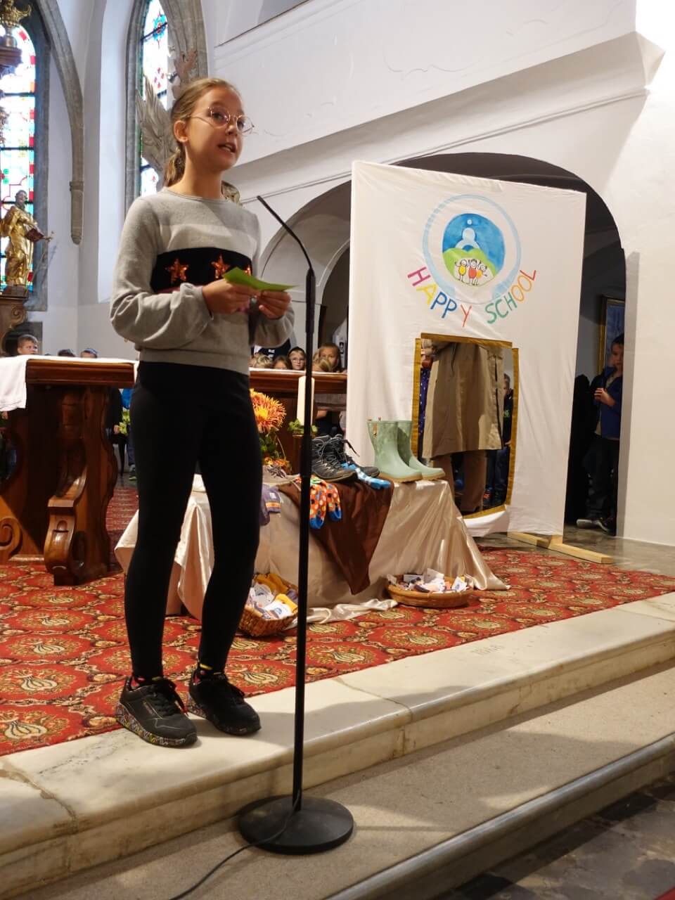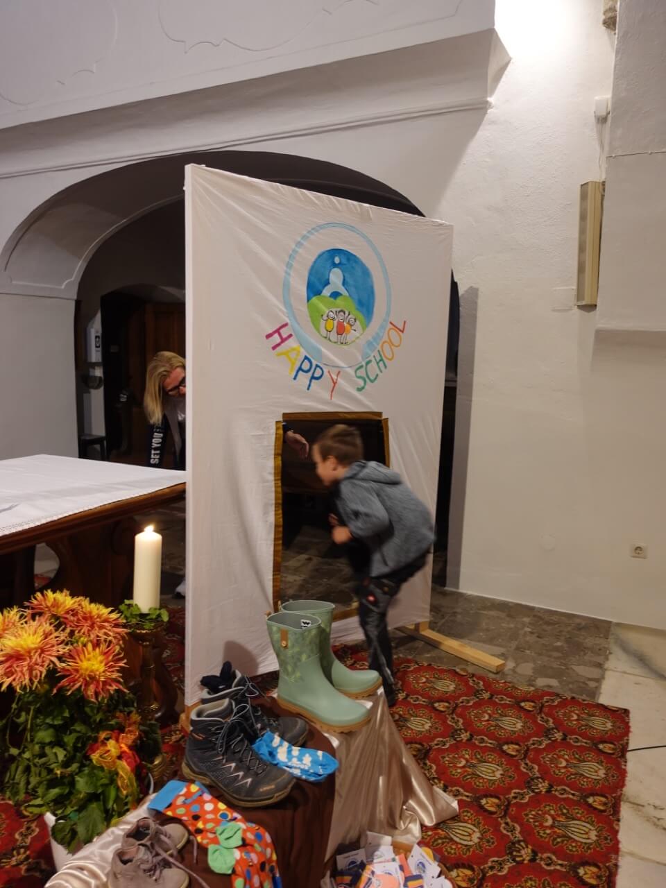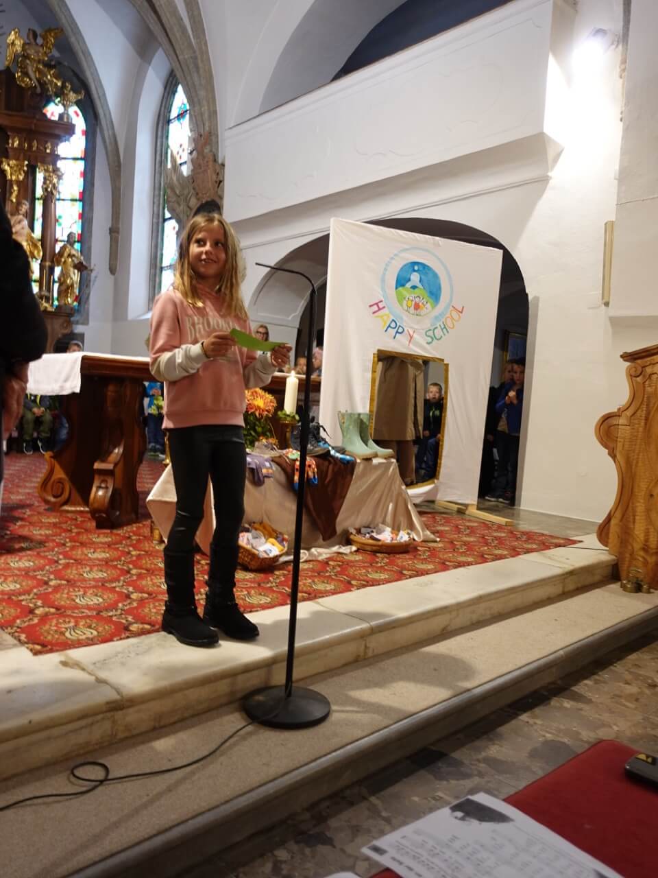 Unsere Erstklässler wurden beim Eröffnungsgottesdienst von allen Kindern und nochmals vom ganzen Schulteam herzlichst begrüßt und willkommen geheißen. Symbolisch sind die Erstklässler durch ein Durchgehtuch „Happy School“ gegangen. Für diesen neuen Lebensabschnitt hat Pfarrer Bernhard die Kinder gesegnet. Möge es ganz viele fröhliche, zufriedene und schöne Momente geben.