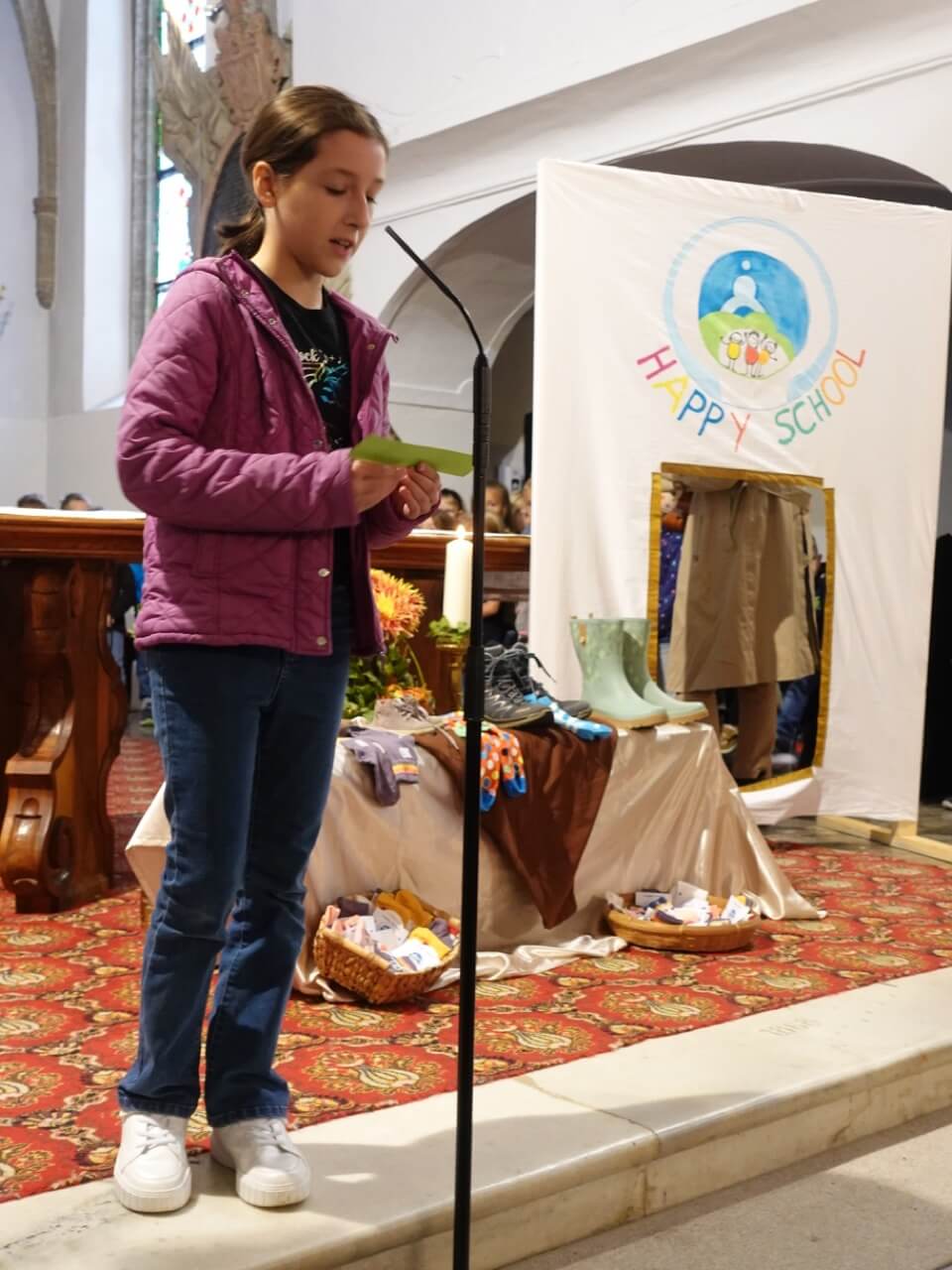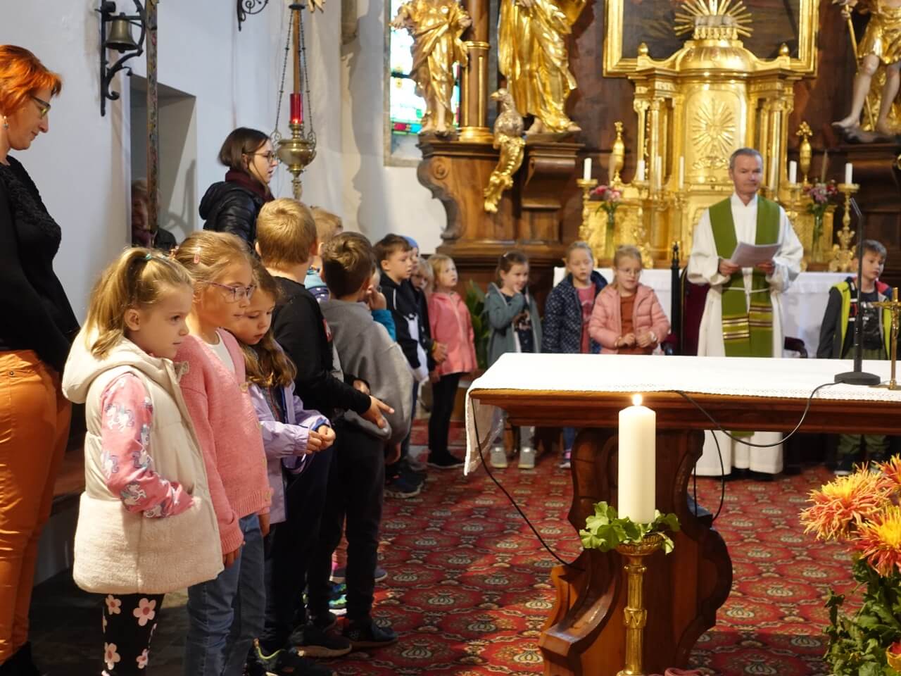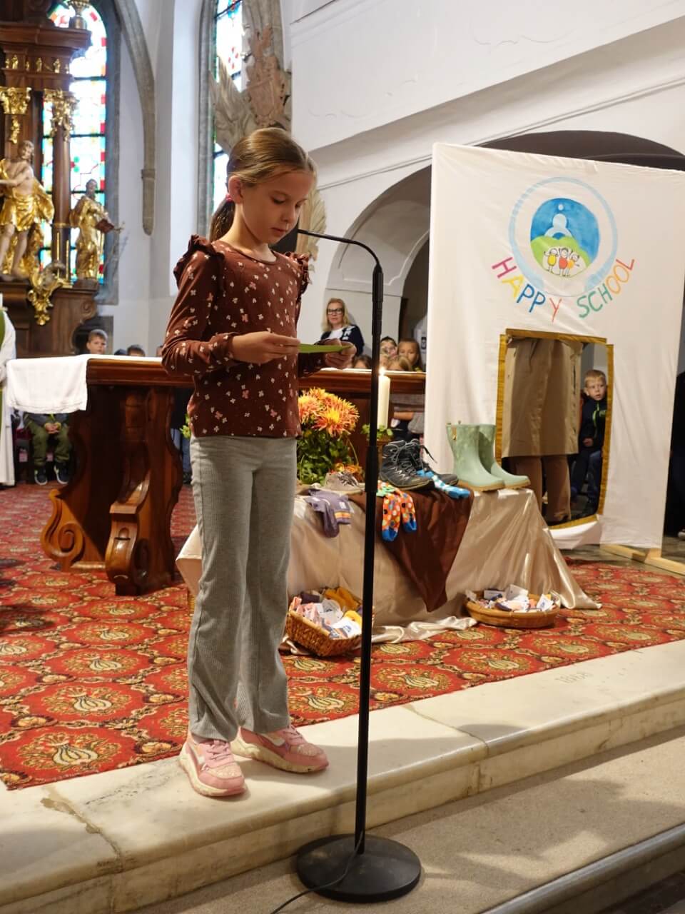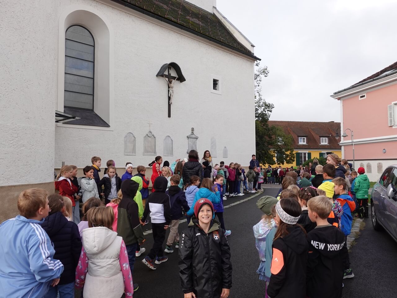 Unsere Erstklässler wurden beim Eröffnungsgottesdienst von allen Kindern und nochmals vom ganzen Schulteam herzlichst begrüßt und willkommen geheißen. Symbolisch sind die Erstklässler durch ein Durchgehtuch „Happy School“ gegangen. Für diesen neuen Lebensabschnitt hat Pfarrer Bernhard die Kinder gesegnet. Möge es ganz viele fröhliche, zufriedene und schöne Momente geben.