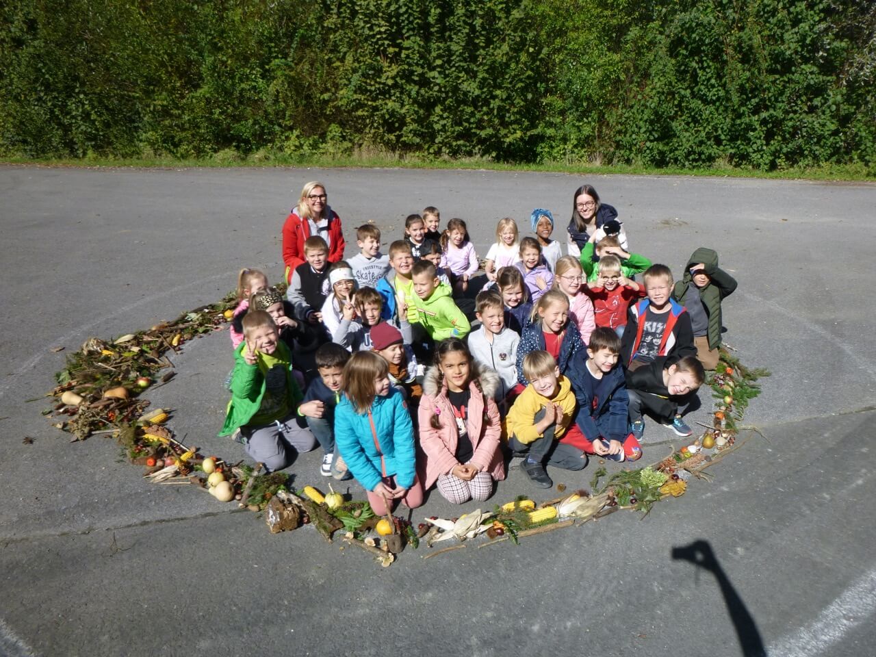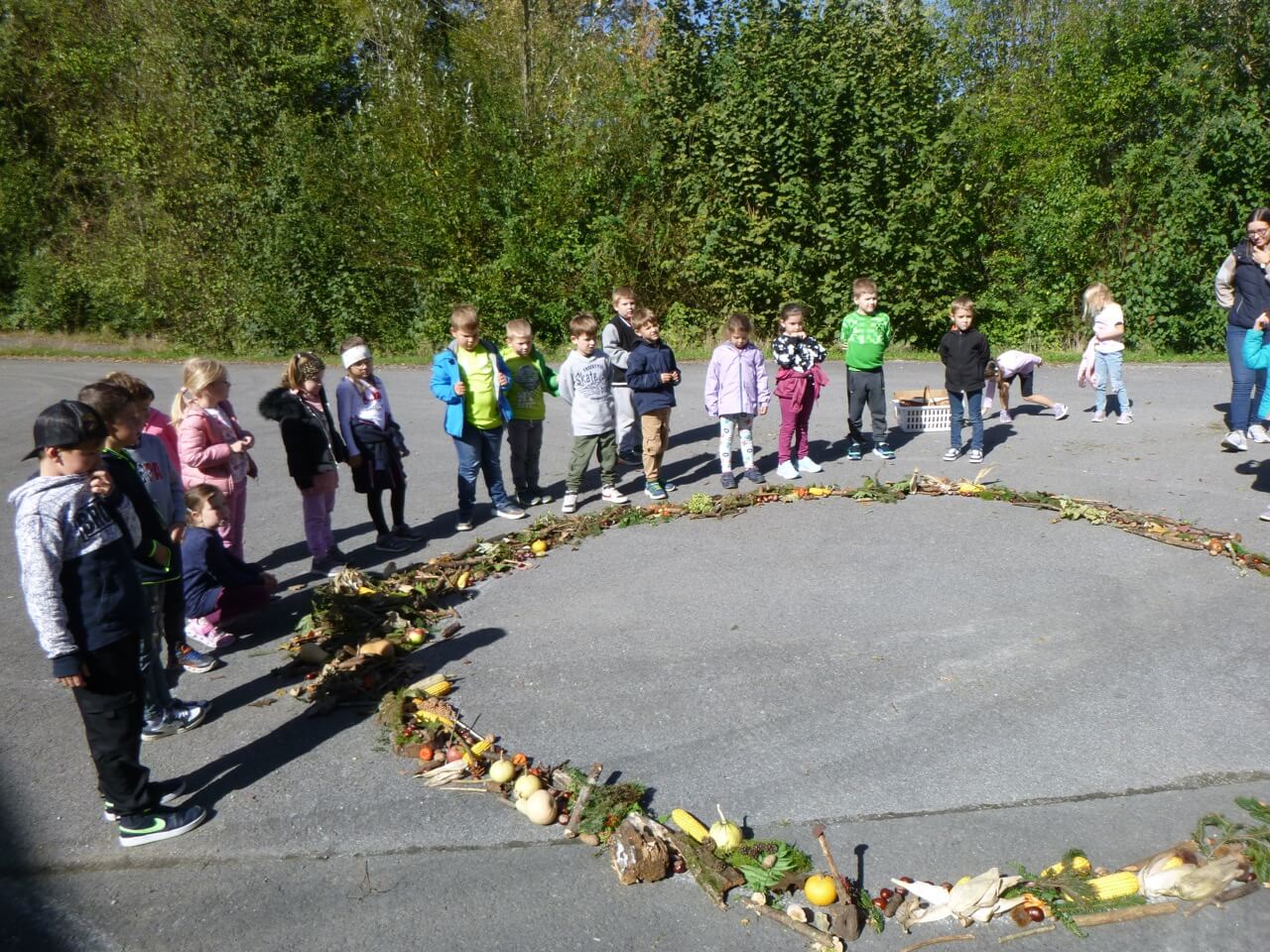 Ein weiteres Highlight war die Gestaltung eines großen Herbstmandalas. Bei einem Ausflug in den Wald sammelten die Schülerinnen und Schüler Blätter, Zweige und Kastanien, um daraus ein buntes Mandala zu legen. Dabei arbeiteten sie Hand in Hand und konnten kreativ sein. Das fertige Mandala schmückte einige Tage den Schulhof und zeigte die Zusammenarbeit der Klassen. Graztag 4. Klassen