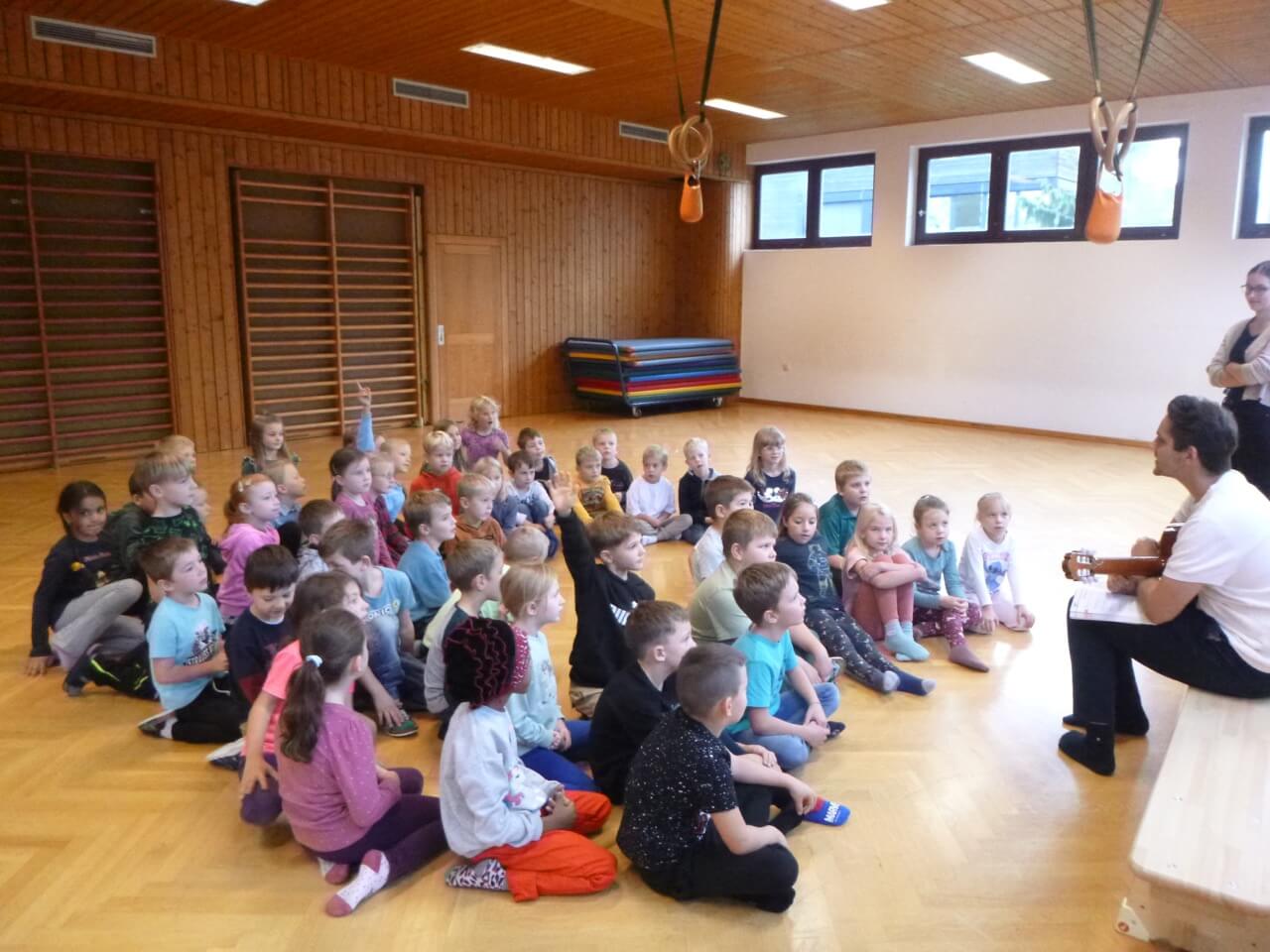 Besonders beliebt war das gemeinsame Musizieren, bei welchem Erstklässler:innen zusammen Lieder sangen und einfache Rhythmen ausprobierten. Mit Freude und Begeisterung lernten sie den „Igel Isidor“, sowie den Popsong „Wellerman“ kennen.