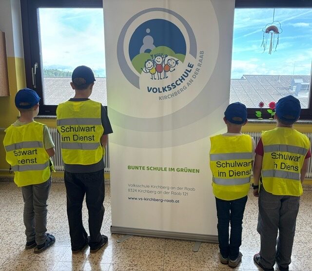 Auch in diesem Schuljahr sind wieder vier Kinder-Schulwarte an der Volksschule Kirchberg an der Raab im Einsatz. Schon seit Schulbeginn verrichten sie ihren Dienst in Uniform und übernehmen wichtige Aufgaben im Alltag. Die Uniform macht sie für alle sofort erkennbar – ein sichtbares Zeichen für ihre besondere Rolle. Mit großem Stolz erzählen die Kinder, dass Mitschülerinnen und Mitschüler sie ansprechen, ihnen Fragen stellen und sogar ihre Hilfe anbieten. Dieses Miteinander stärkt das Verantwortungsbewusstsein und den Zusammenhalt in der Schulgemeinschaft.