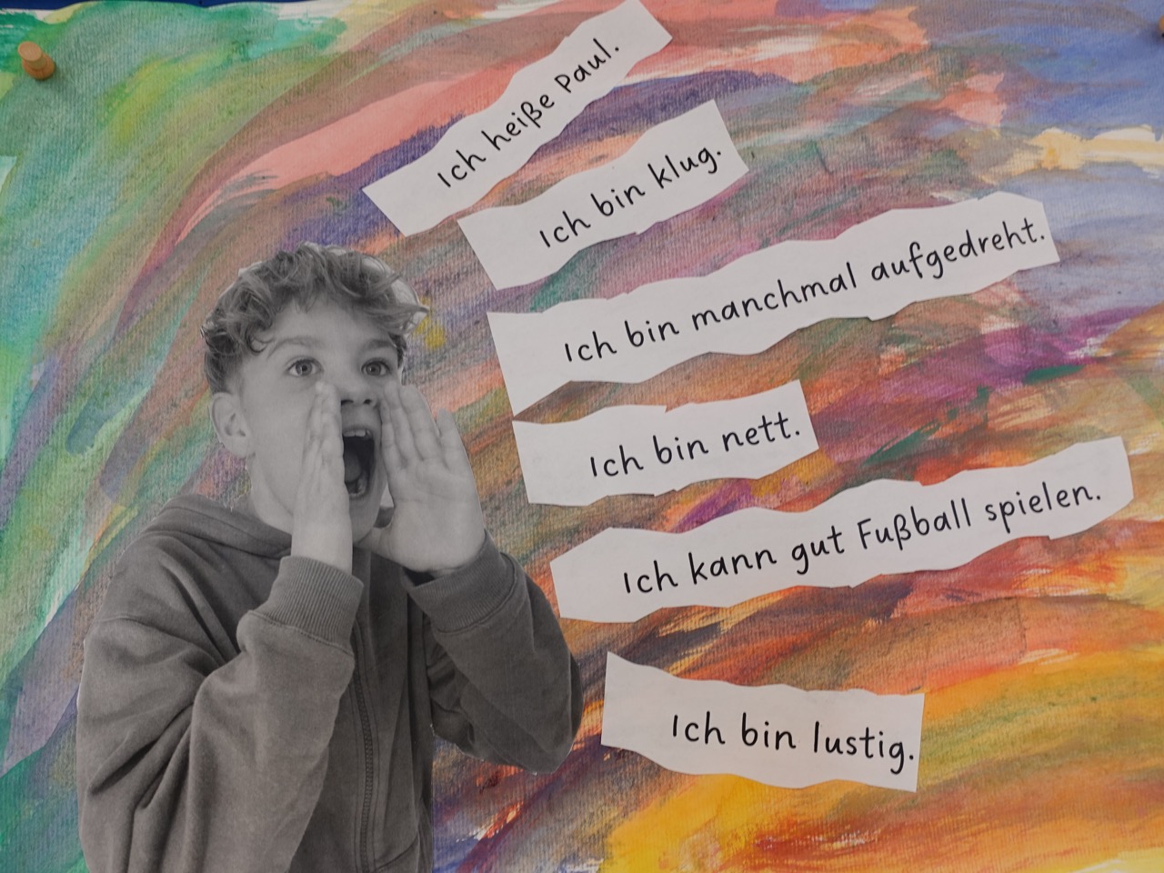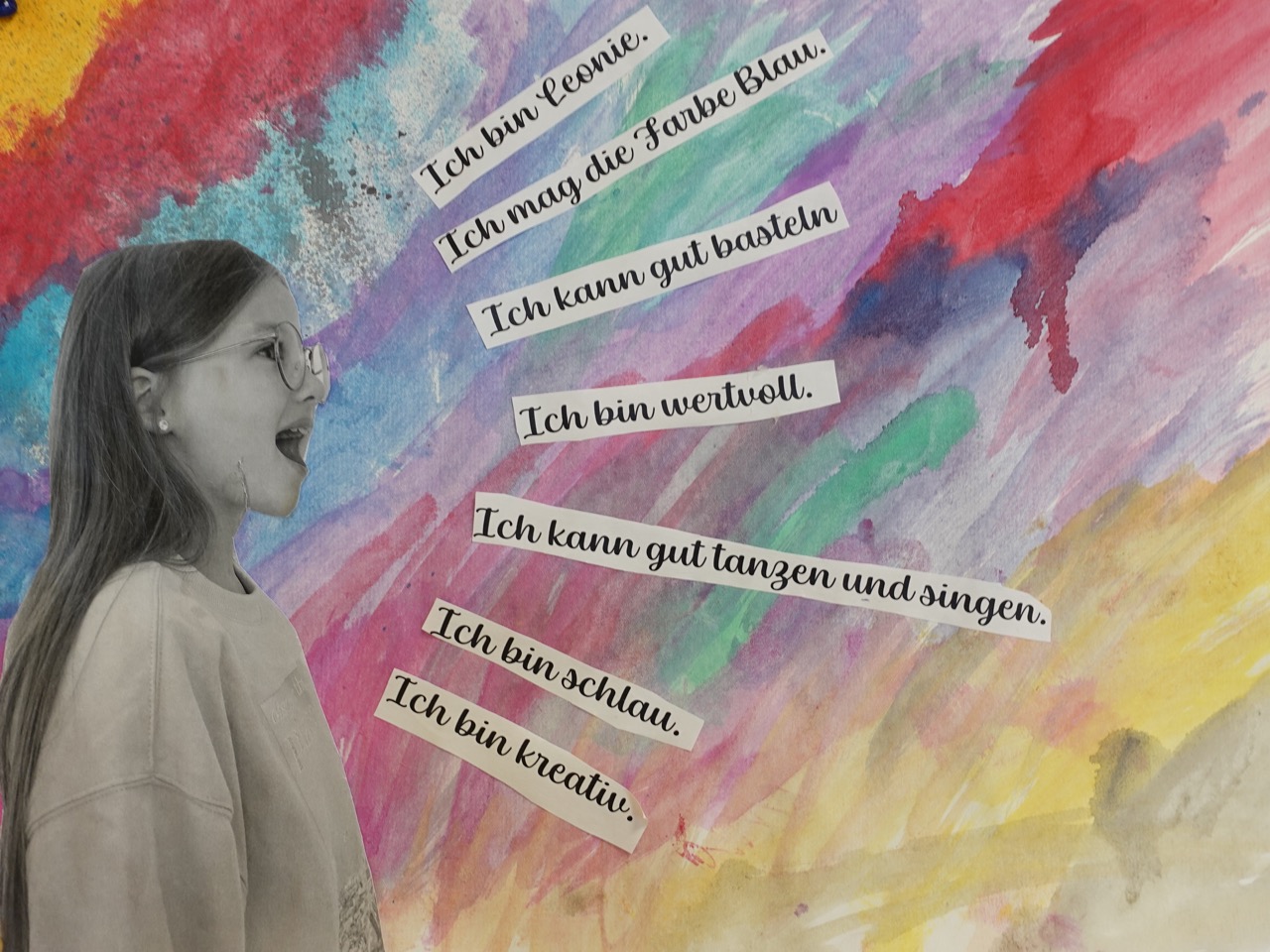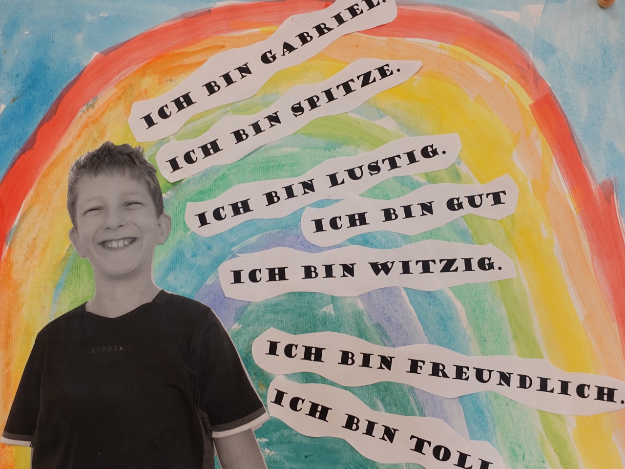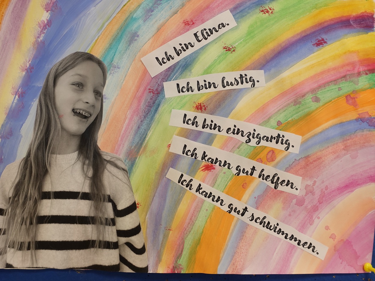 Im Kunstunterricht wurde das Thema kreativ umgesetzt: die 4b gestaltete Selbstportraits zum Thema „Das bin ich“.