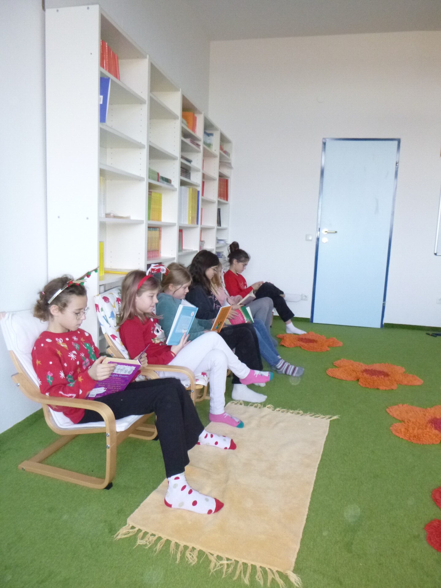Für alle hier genannten Dinge hatten die Kinder der vierten Klassen in diesem Monat besonders viel Zeit, denn der Dezember wurde von den beiden Klassen zum Lesemonat auserkoren. Passend zum Motto „Lesen ist Abenteuer im Kopf“ konnten die Viertklässler selbst einige Abenteuer im „Lesenest“ erleben.