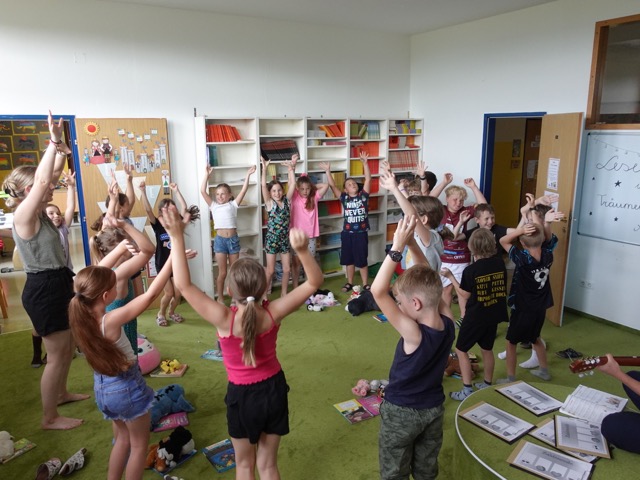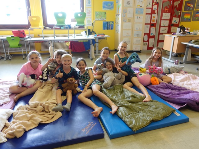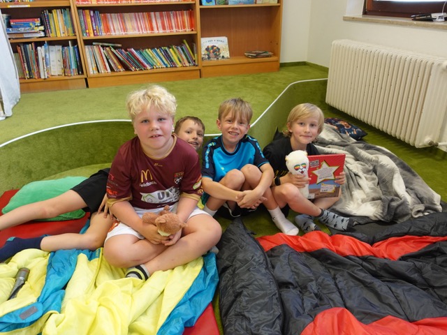 Die Aufregung in den 2. Klassen war groß. Am 20. bzw. 27. Juni war der lang ersehnte Tag der Lesenacht endlich gekommen. Mit Schlafsack, Kuscheltier und Lieblingsbuch im Gepäck strömten die Kinder in das Lesenest, um gemeinsam eine unvergessliche Nacht in der Schule zu verbringen. Nach einer kurzen Vorstellrunde der mitgebrachten Kuscheltiere und Bücher wurde ein wenig musiziert, getanzt und im Freien gespielt. Nach dem gemeinsamen Abendessen galt es dann ein kniffliges Lese-Escape-Rätsel zu lösen. Ein gemeiner Bücherdieb trieb sein Unwesen in der Schule und hatte die Schatzkiste der Lehrerinnen mit einem Schloss versperrt, sodass die Kinder nicht an den Inhalt kommen konnten. Nur mit Hilfe von Teamwork und Lesefähigkeit gelang es den Kindern den vierstelligen Zahlencode herauszufinden und nach einigen weiteren Hürden schlussendlich den Inhalt der Schatzkiste zurückzuholen. Nach so viel Aufregung setzte dann auch langsam die Müdigkeit ein und so wurde der Abend mit einer Vorlesegeschichte beendet, ehe die Kinder noch ein wenig mit ihrer Taschenlampe in den mitgebrachten Büchern lesen durften und dabei einschliefen. Wir hoffen, dass wir den Kindern mit dieser Lesenacht ein unvergessliches Erlebnis ihrer Schulzeit bescheren konnten und bedanken uns ganz herzlich bei den Eltern der beiden 2. Klassen für die Organisation des Frühstücks am nächsten Morgen.