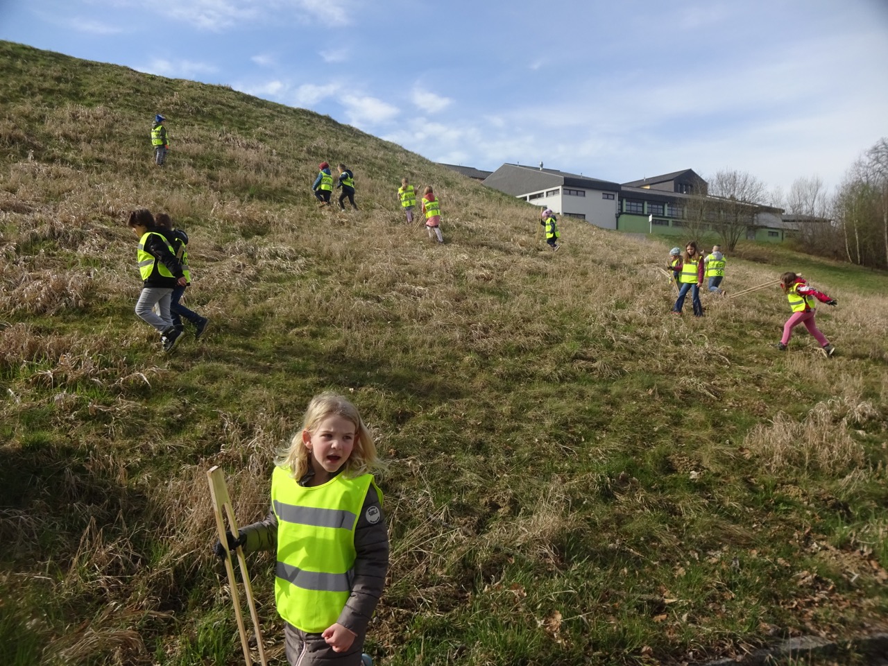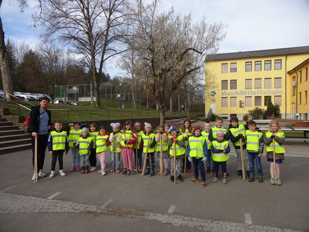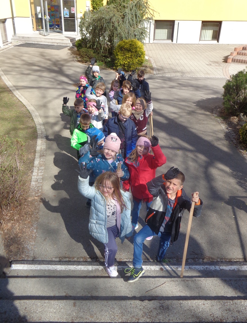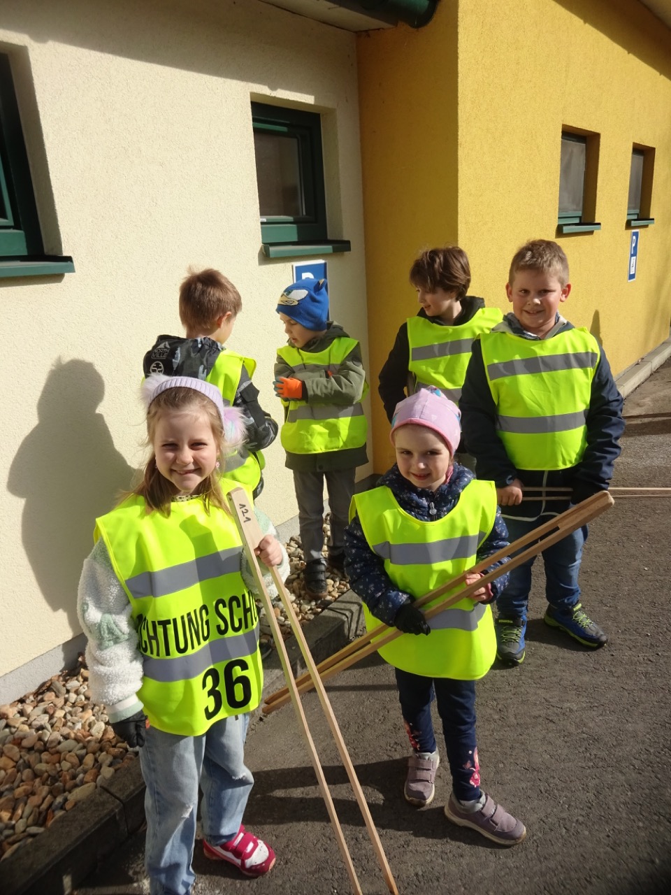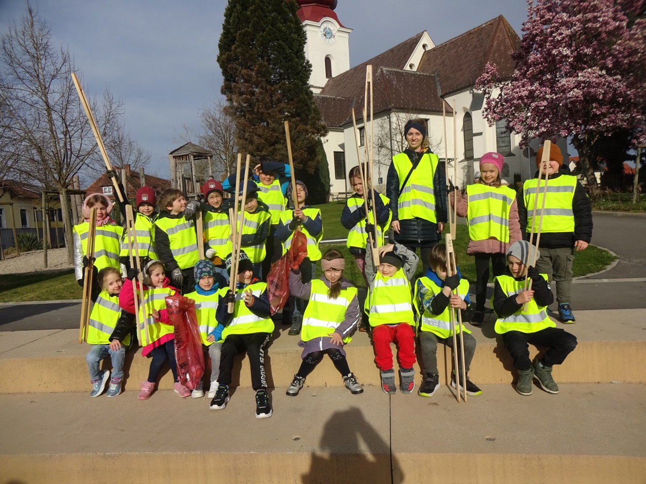 Dieses Lied diente in den 1. Klassen als Einstieg zum Thema „Nachhaltigkeit“. Rund um den RAIBA-Malwettbewerb, der unter dem Motto „Der Erde eine Zukunft geben“ stand, wurde das Bewusstsein der Schüler:innen für diese Thematik geschärft. Die Kinder konnten unter anderem eine gesunde Jause mit saisonalem Gemüse genießen. Mit Rudi Ratte lernten sie im Rahmen eines Workshops des Abfallwirtschaftsverbandes, wie man Müll richtig trennt und wie lange es dauert, bis verschiedenster Abfall von der Natur abgebaut wird. Ihr Wissen konnten die Erstklässler:innen beim Frühjahrsputz in die Praxis umsetzen. Mit viel Engagement wurde Müll in der unmittelbaren Umgebung der Schule gesammelt und somit ein Beitrag zum Umweltschutz geleistet.