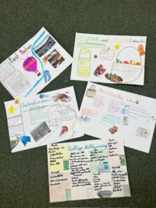 Während meines Praktikums erhielt ich durch die Klassenlehrerin Julia Kamenschek die Möglichkeit, viele abwechslungsreiche und spannende Unterrichtseinheiten gemeinsam mit den Kindern zu gestalten. Unter anderem setzte ich ein Projekt zum Thema „Umweltschutz und Nachhaltigkeit“ um, bei dem viele kreative und inhaltlich sehr gelungene Arbeiten entstanden. Im Sachunterricht beschäftigten wir uns intensiv mit dem Thema „Richtige Mülltrennung“, im Mathematikunterricht bearbeiteten die Schüler*innen passende Sachaufgaben, im Werkunterricht wurden Stofftaschen gestaltet und zusätzlich arbeiteten die Kinder Plakate mit Tipps für ein nachhaltiges Leben aus.