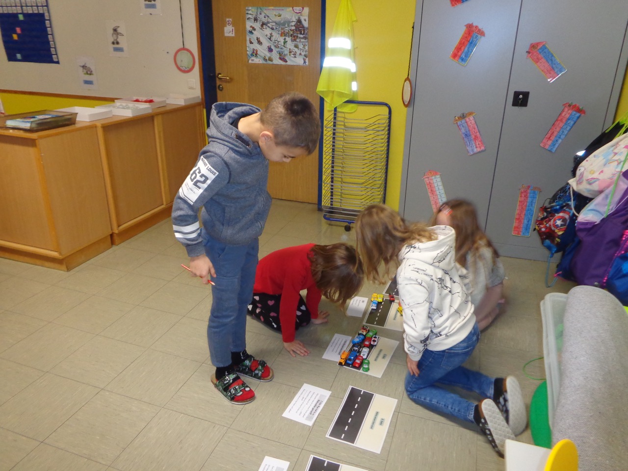 Eine weitere geordnete Herangehensweise bot die Schreibstraße. Bei dieser konnten die Schüler:innen zu einem bestimmten Thema Sätze auswählen oder Fragen mit eigenen Worten beantworten. Mit einem kleinen Auto wurde dafür von Station zu Station gefahren, bis das Ziel erreicht wurde. Zum Schluss erhielten sie einen zusammenpassenden Text.