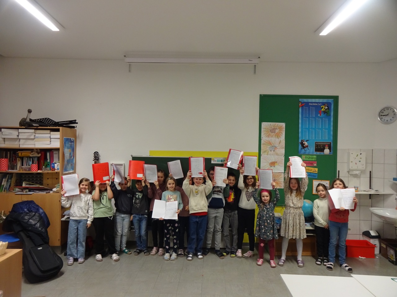 In den vergangenen Schulwochen drehte sich in den zweiten Klassen alles ums freie Schreiben. Mit viel Begeisterung und Kreativität zeigten die Schüler:innen, was sie schon alles können: Geschichten erfinden bzw. weiterschreiben, eigene Texte gestalten, und noch vieles mehr.