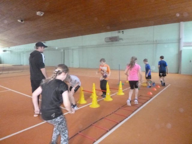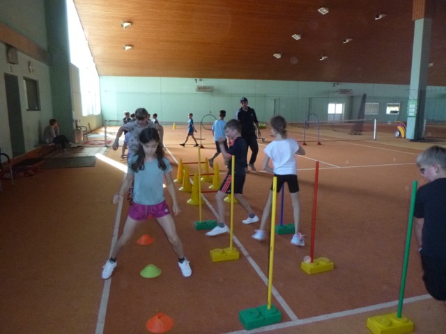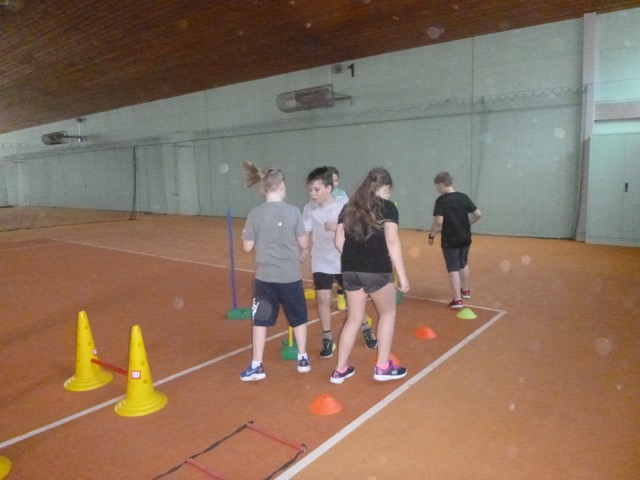 Die Stunde begann mit einem gemeinsamen Aufwärmen, bei dem die Kinder spielerisch an die grundlegenden Bewegungen des Tennissports herangeführt wurden. Danach ging es auf den Platz, wo die Kinder erste Schlagtechniken und Ballübungen ausprobierten.