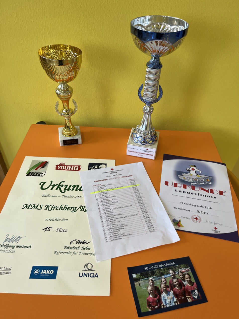 Auch im Fußball waren unsere Mädchen erfolgreich: Gemeinsam mit Lehrer Simon Puchner erzielten sie im Ballerina-Cup sowie im Mini-Ballerina-Cup – in Kooperation mit der Mittelschule – großartige Leistungen.