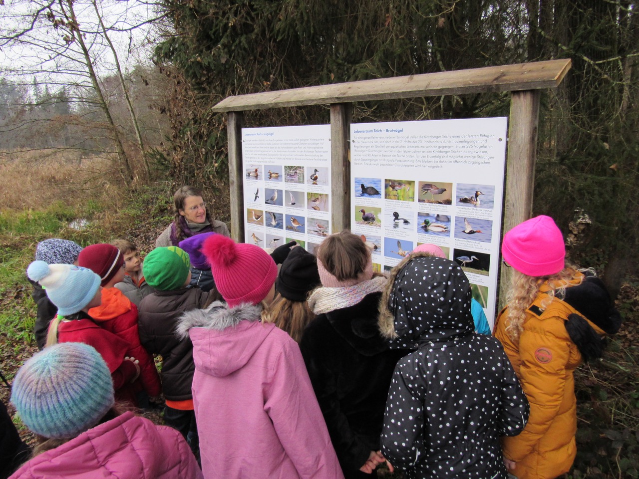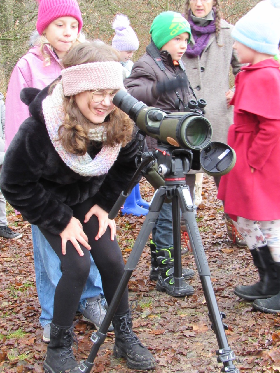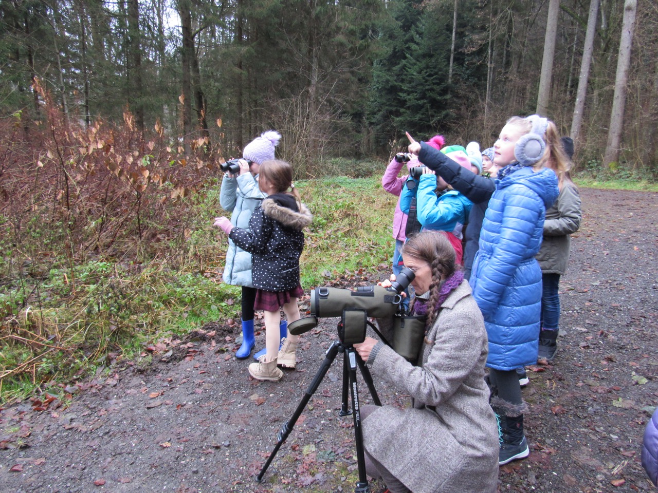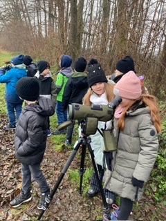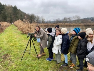 Am Mittwoch, dem 11. Dezember beehrte Frau Ofner die dritten Klassen wieder einmal mit einer tollen Exkursion. Dieses Mal drehte sich alles um unsere heimischen Vögel. Nach einem kurzen theoretischen Input und einem Federquiz machten wir, ausgestattet mit mehreren Ferngläsern, einen Spaziergang zu den Kirchberger Teichen. Dort kann man nämlich (wenn man Glück hat) bis zu 220 verschiedene Vogelarten antreffen – unglaublich! Durch Frau Ofners Fachwissen und das bereitgestellte Spektiv konnten wir einige sogar ganz aus der Nähe beobachten. Die Kinder waren wie immer sehr begeistert von diesem spannenden Ausflug. Wir danken ihr vielmals für den interessanten Vormittag, der uns wieder einmal gezeigt hat, an was für einem interessanten Standort unsere Schule steht.