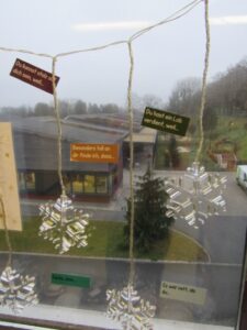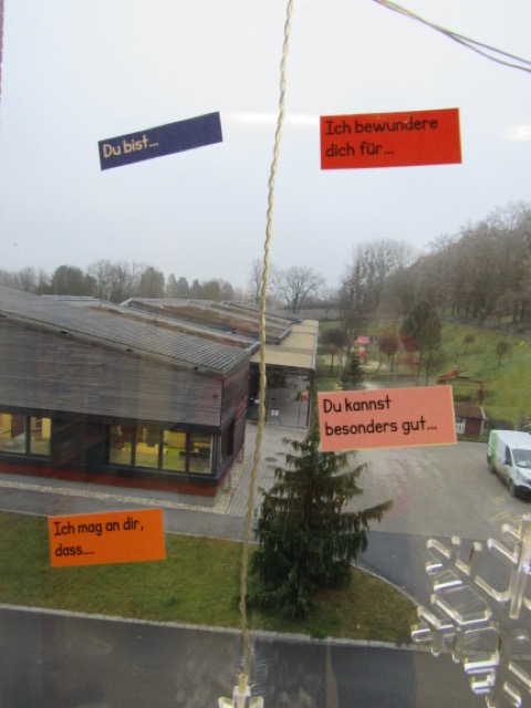 Diese Botschaft und viele bunte Gläser schmückten die 4b-Klasse während der Adventzeit. Jedes Kind gestaltete ein eigenes Glas, das im Laufe der Wochen mit lieben und wertschätzenden Worten der Mitschülerinnen und Mitschüler gefüllt wurde. So sammelten wir gemeinsam Herzensworte, die Freude schenken und den Zusammenhalt in der Klasse stärken.